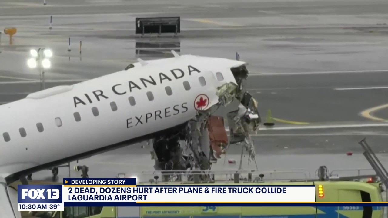 Two pilots are dead and more than 40 others are hurt after an Air Canada plane collided with a fire truck at LaGuardia Airport Sunday night. FOX Reporter Caroline Elliott is at the airport as the investigation into what caused the crash continues.