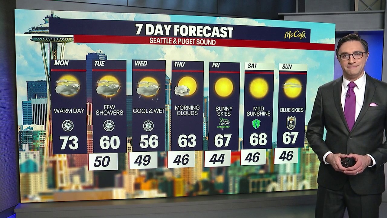 Seattle weather: Mostly cloudy skies, warm temperatures for Monday