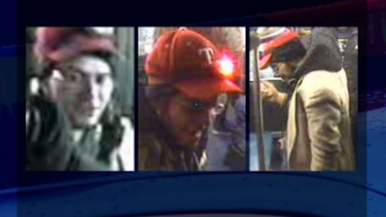 FUGITIVE WANTED IN KING COUNTY February 20, 2015 -- King County detectives need help identifying a suspect accused of groping a woman on a busy Metro bus. Camera's on-board the 120 Route that goes between Burien and downtown Seattle snapped photos of the suspect before he got away in November. Detectives say he struck after boarding the bus at the Burien Transit Center. "He started reaching over and grabbing her leg,” says Sgt. B.J. Myers of the King County Sheriff’s Office. “The victim told him to stop, asked him to move away, and he repeatedly did it a couple of times. When this lady decided to get up and go alert the bus driver, get out of the way, this guy groped her as she was walking away. That type of behavior's concerning no matter where it happens. It was about 6 o'clock in the evening, so it was a high traffic time on the bus. This guy was really blatant to be doing it at this time of night when a lot of people were on the bus, so obviously we're concerned about the aspect of this guy not really having any shame about what he was doing." The man wore glasses and a large tan coat. Detectives are really hoping his unique head wear combo that was topped-off with a red Texas Rangers hat stands out to someone who can help identify him. "It looked like he was wearing several hats on top of each other or maybe some type of scarf on top of a hat on top of another hat,” Sgt. Myers said. “So I don't know whether that's a particular look that this guy does often, but it definitely stood out to us when we were looking at the pictures." If you can tell King County detectives this accused groper's name, call an anonymous tip to: CRIME STOPPERS: 1-800-222-TIPS You must call the Crime Stoppers hotline with your tip to be eligible to receive a cash reward for information leading to a fugitive’s arrest. CLICK HERE for information on how to TEXT A TIP to Crime Stoppers