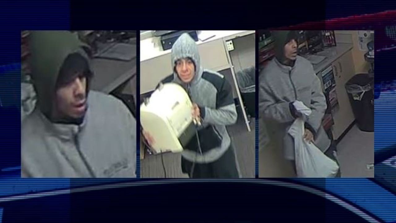 In the photos from the gas station burglaries he wore a gray zip-up sweatshirt with a green hoodie underneath.