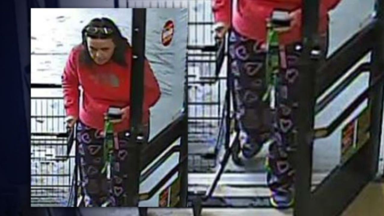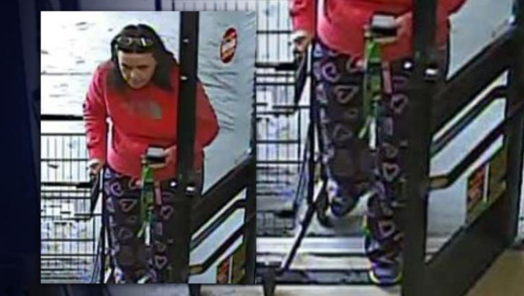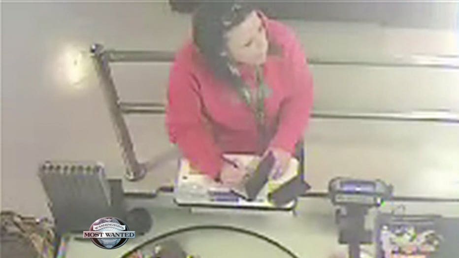 WANTED IN EDMONDS -- Edmonds police are hoping you recognize this woman sporting a pair of purple pajama bottoms with pink hearts on them at a grocery store she's accused of using a stolen check at. “We're looking for a white female, we think she's probably late 30's to early 40's,” says Edmonds Sgt. Shane Hawley. “She's associated with a burglary that happened back in February. We're still trying to identify her. She was cashing checks stolen from the residence. We have her on video cashing a check from that burglary and then we also have her entering a dark gray SUV and leaving the parking lot.”