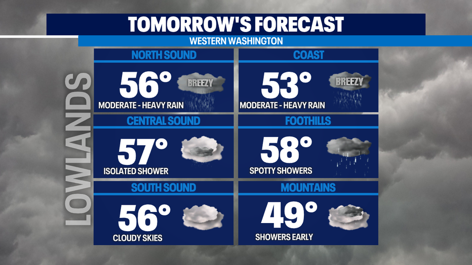 We reached a high of 53 degrees this afternoon and received .12" of rain at SeaTac. We'll close out the month with above normal totals sitting at 10.26" at SeaTac. This ranks it the 5th wettest November on record!