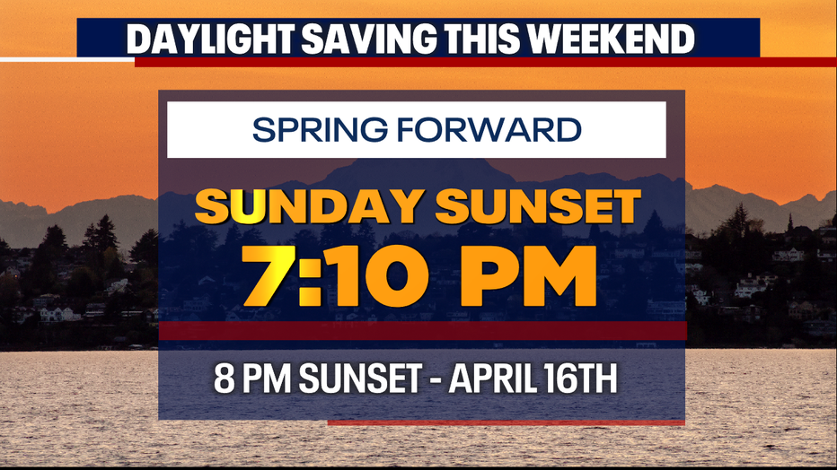 Highs Sunday land in the low 50s, with rain hitting again just after sunset. And speaking of the sunset, for the first time this year we'll move into the 7 p.m. hour. This is all thanks to Daylight Saving Time and "springing forward" late Saturday night into early Sunday morning. We lose an hour of sleep, but gain more daylight.
