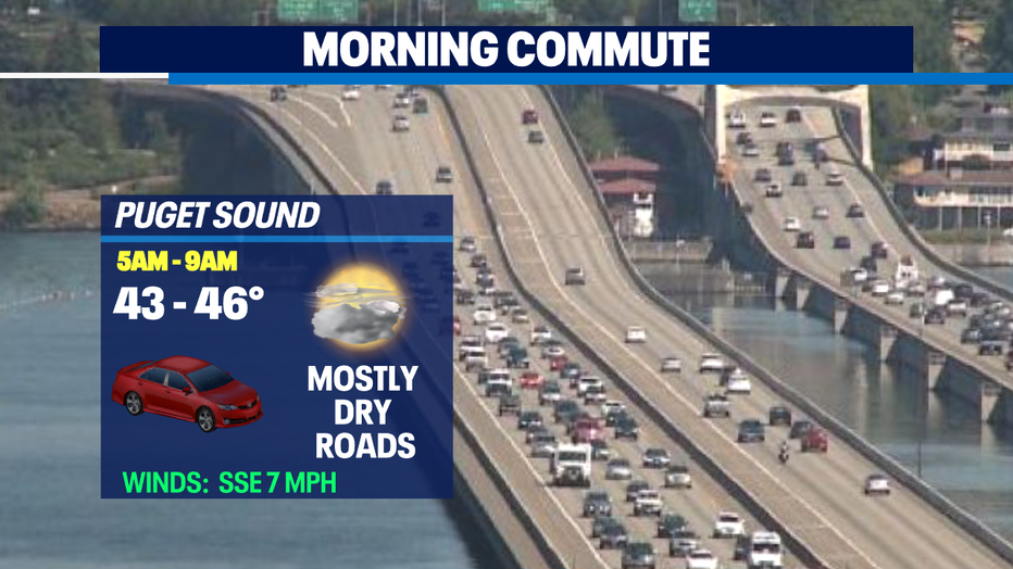 We should see mostly dry roads as we get up and out the door for the morning commute. Temps will warm into the mid 40s.