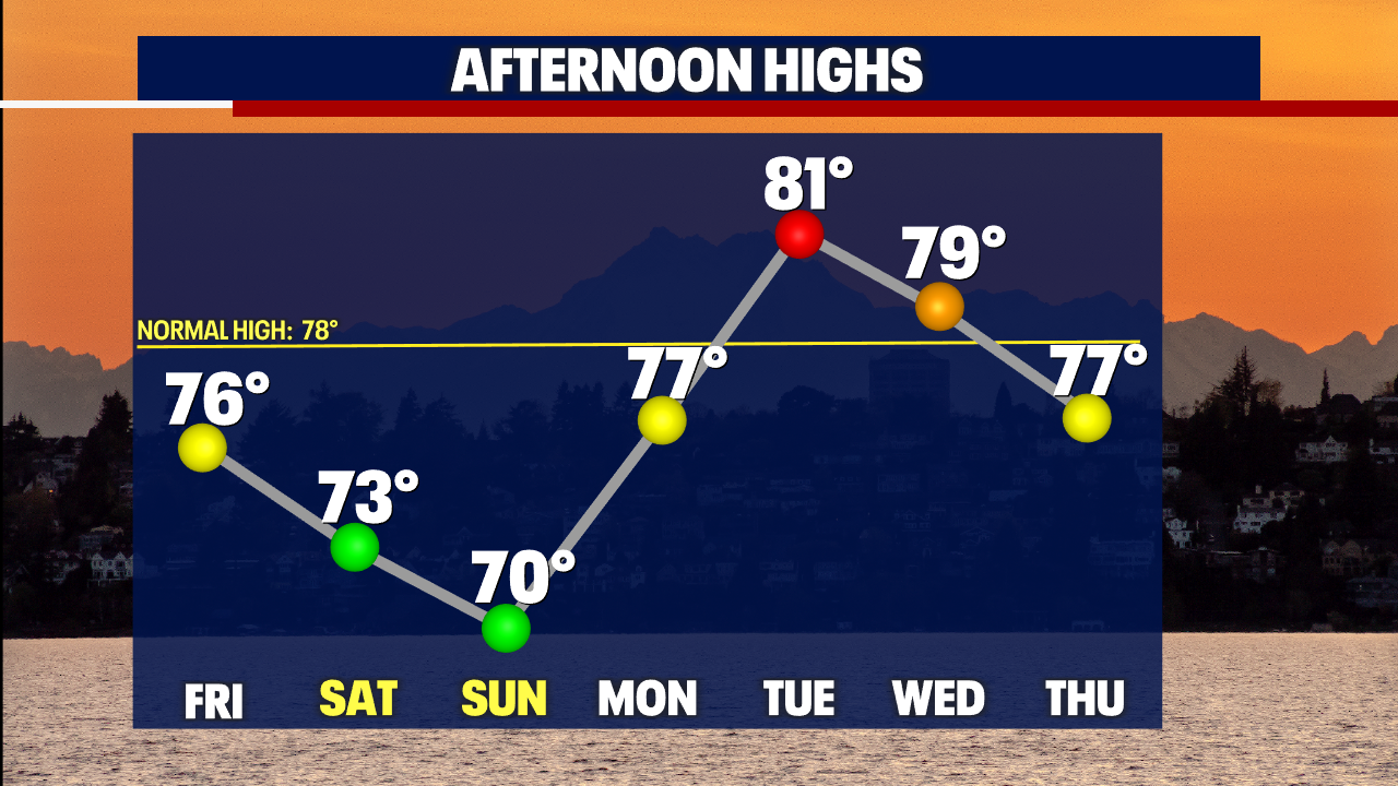 Seattle weather: Cool down on the way for the weekend with a chance for a few spotty showers