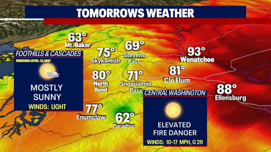 Overnight, look for clouds to increase with temperatures dropping into the low to mid-50s across Western Wash.