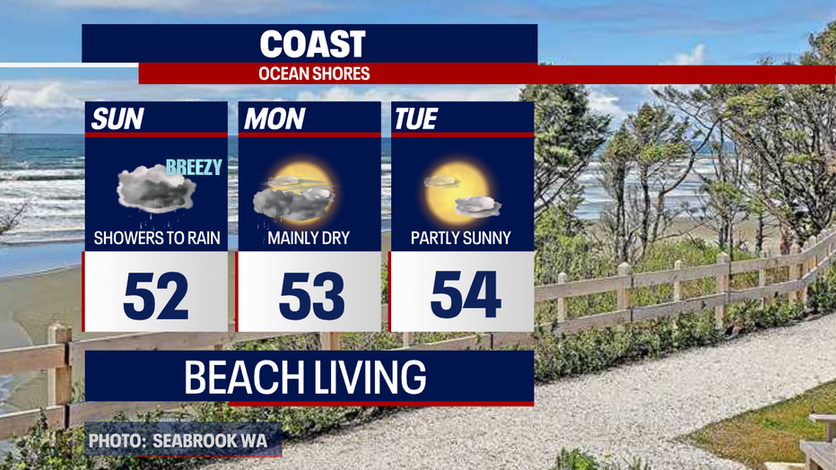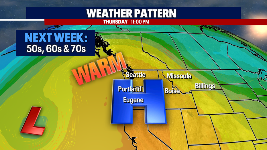 Tuesday is our transition day with clouds and sunshine and warmer highs. Seattle warms into the upper 50s. And by Wednesday a strong ridge of high pressure takes over the Pacific Northwest. This ridge will finally block out systems from flooding into Western WA, but instead finally give us drier and warmer weather.