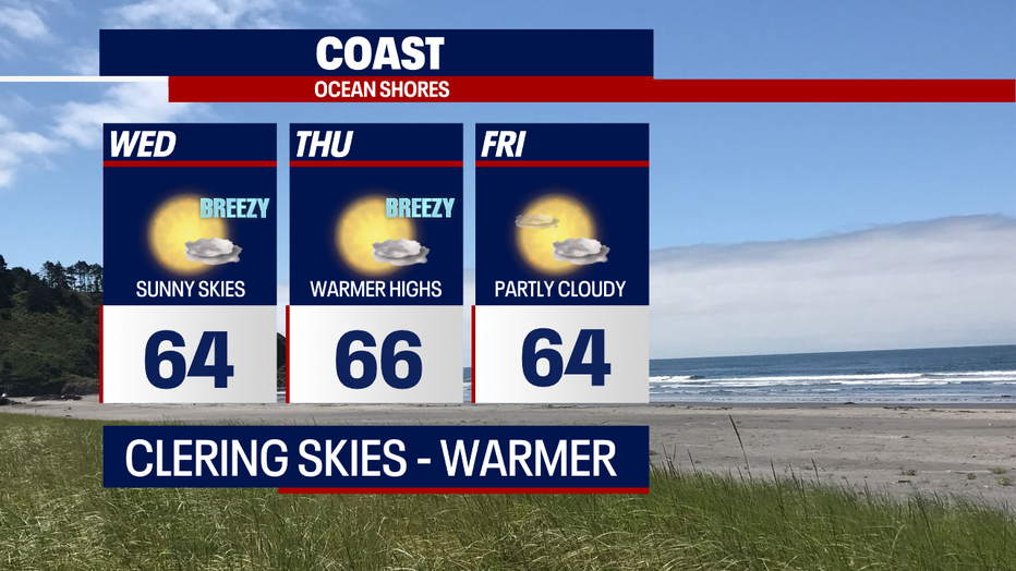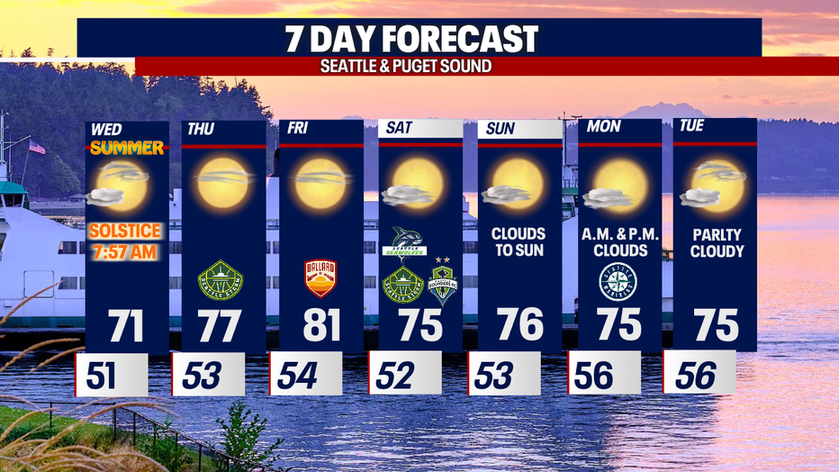 Highs on Wednesday jump to near normal for Seattle with slightly cooler highs for the North Sound.