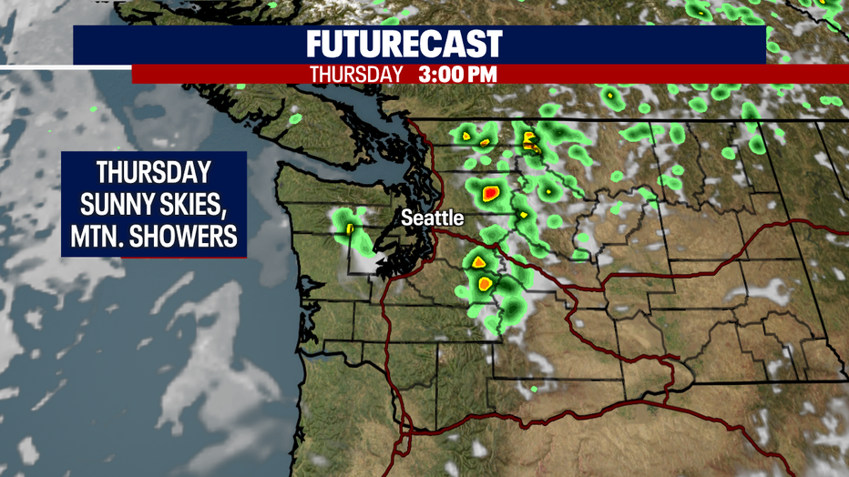 Thursday's highs are even warmer, landing in the upper 70s across Puget Sound. We are keeping an eye on the chance for thunderstorms to fire up over the mountains tomorrow late afternoon/evening.