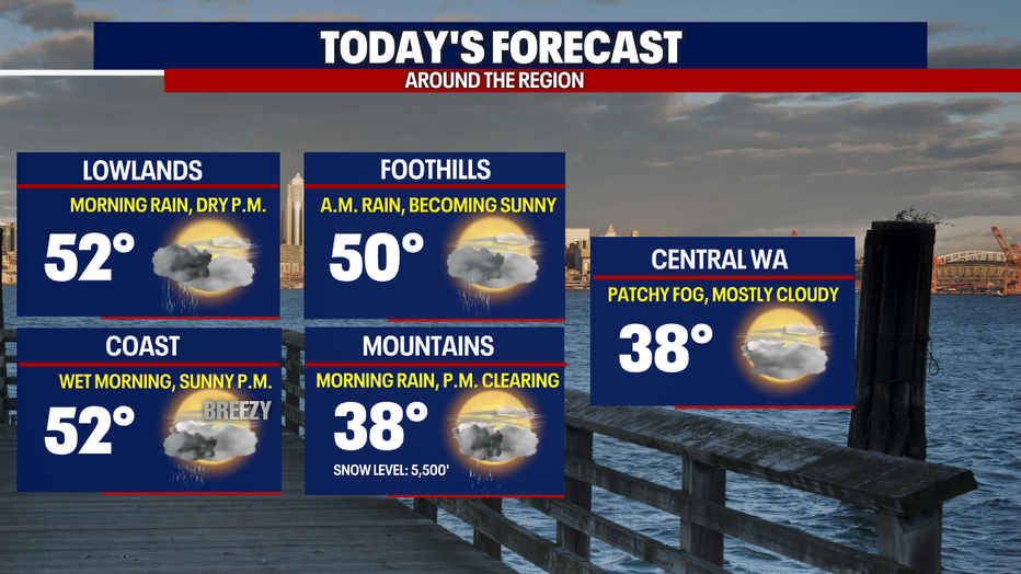 The north Puget Sound area and parts of the Olympic Peninsula will likely have mostly sunny skies this afternoon. Here's a look at our Futurecast as this system pushes south.