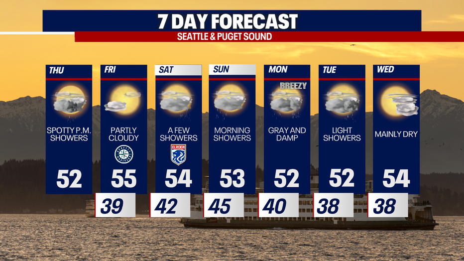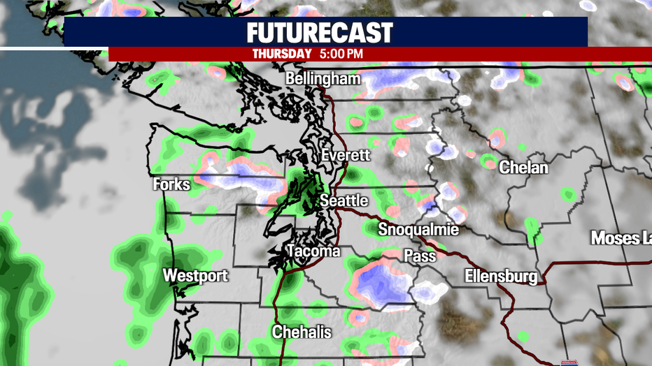 SEATTLE - A weak system will bring light scattered rain showers to Western Washington Thursday.