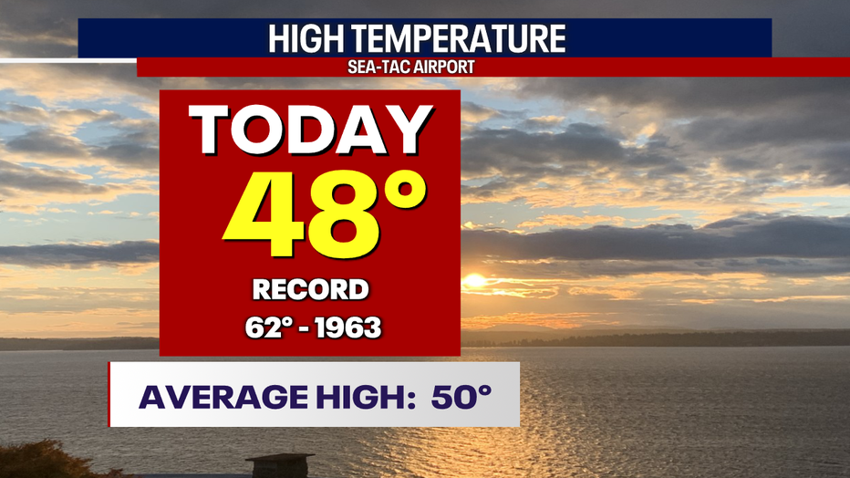 SEATTLE - Highs Saturday warming into the upper 40s for many neighborhoods. SeaTac hit 48 at the airport.