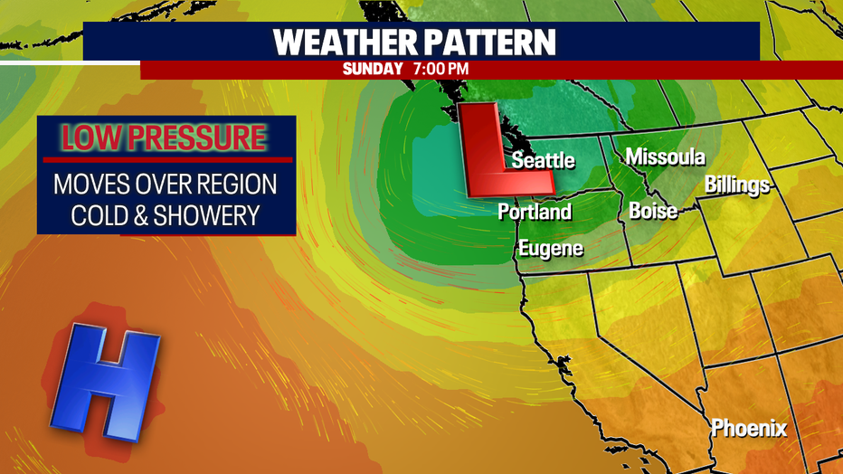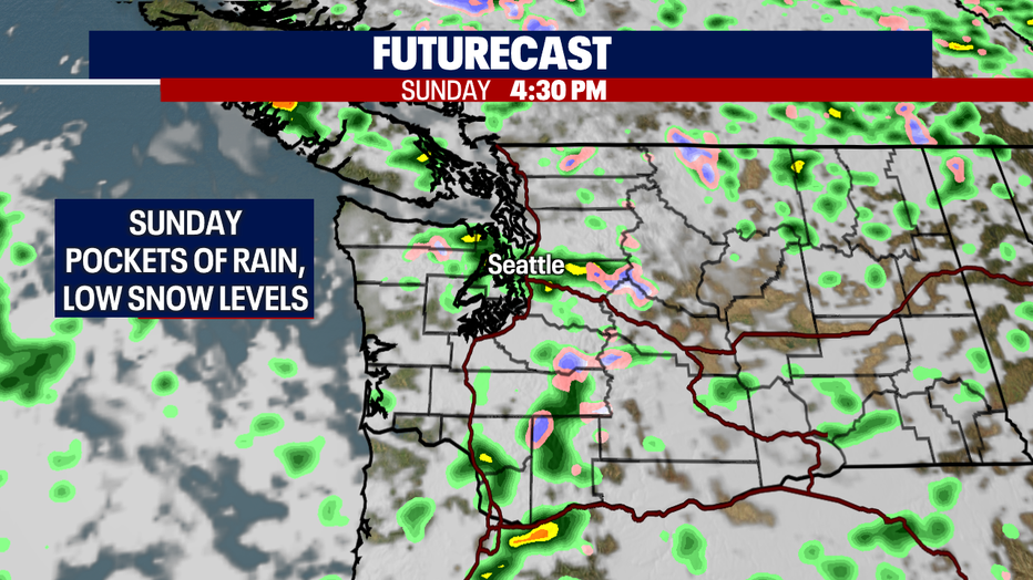 Snow levels drop to 4,500ft making for a wintry mix of rain and snow over the Cascades.