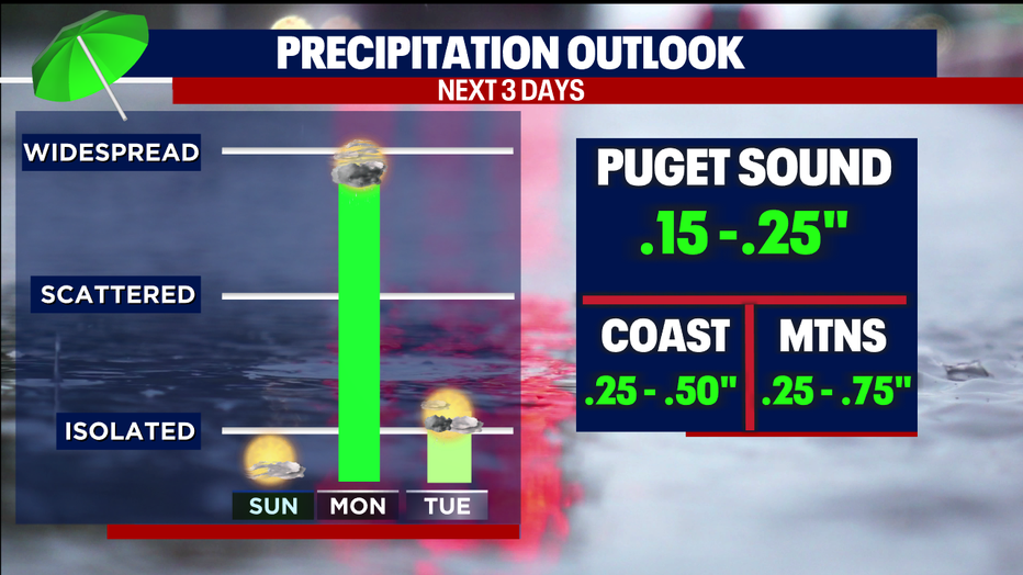We're not forecasting a deep amount of moisture, but anything in the bucket at this point we'll take since we haven't seen any rain since June 20th. Models are hinting that some areas inland could pick up to 0.25". The northern coast could see up to 0.75" with a 0.25" to 0.50" for the Cascades.
