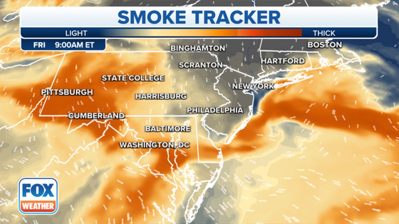 But the recent development of a northerly wind over the fires, combined with high pressure helping to trap the smoke and pollutants closer to the surface, brought smoke to the surface over heavily populated areas of the Northeast. And the FOX Forecast Center believes that pattern could last through the rest of the workweek.