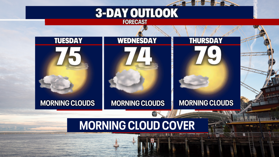We'll have a similar forecast on Wednesday with the morning cloud cover and temperatures in the mid-70s. We'll begin to see *more sunshine on Thursday as temperatures rise into the upper-70s.