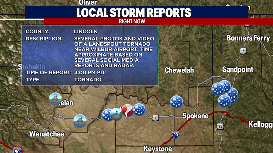 Before I leave you with a look at your 7-day forecast, I want to recap what happened in eastern/central Washington on Monday. A line of severe storms developed (severe thunderstorms were issued) along US 2 and caused lots of damage. A tornado was reported along with numerous hail, wind, and flooding reports.