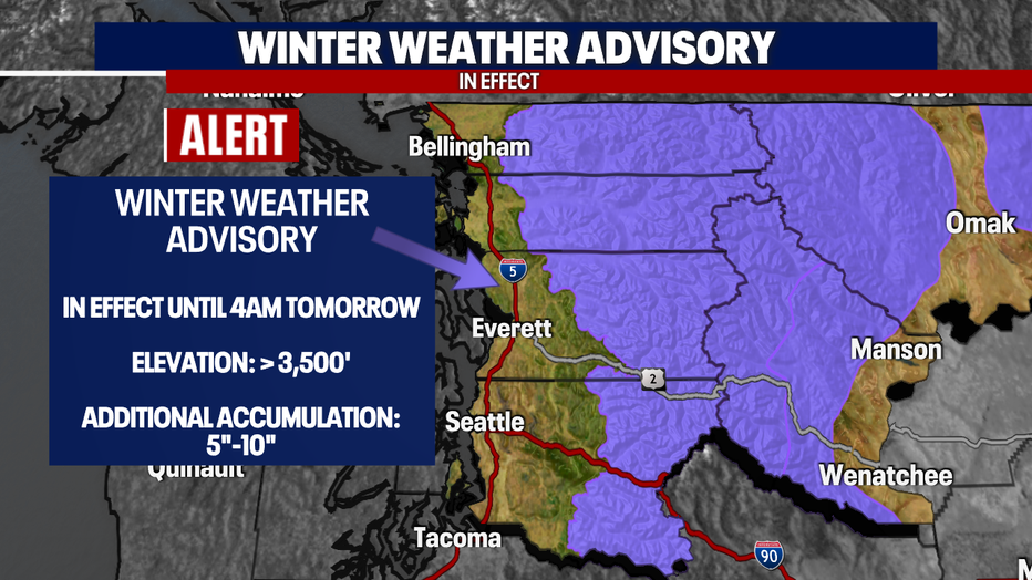 A Winter Weather Advisory is still in effect too. I mentioned we can expect more snow tonight and let me tell you - It's coming down! The heavy wet flakes are flying, and it's making for treacherous driving conditions. Again, avoid the area and passes if you're able to!