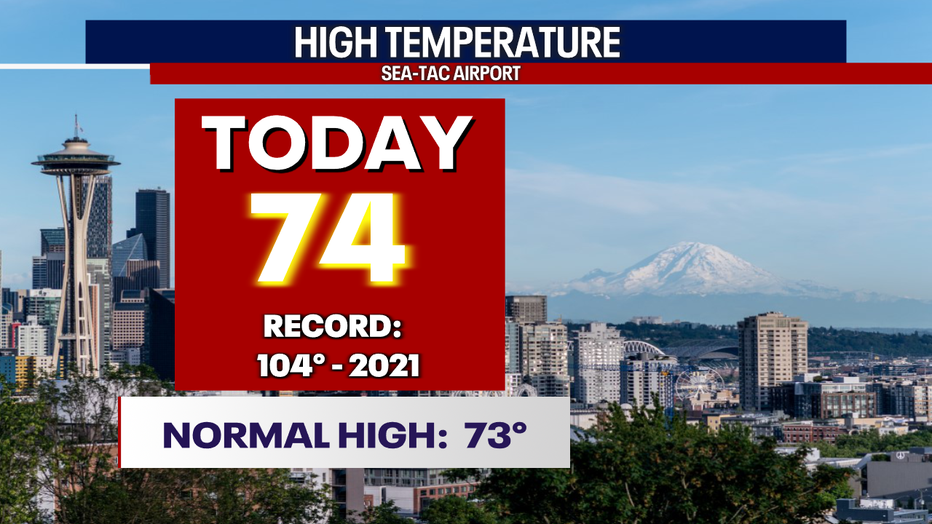 SEATTLE - Another gorgeous afternoon Tuesday. Sea-Tac hit 74 at the airport which is one degree above our seasonal average for this time of year.