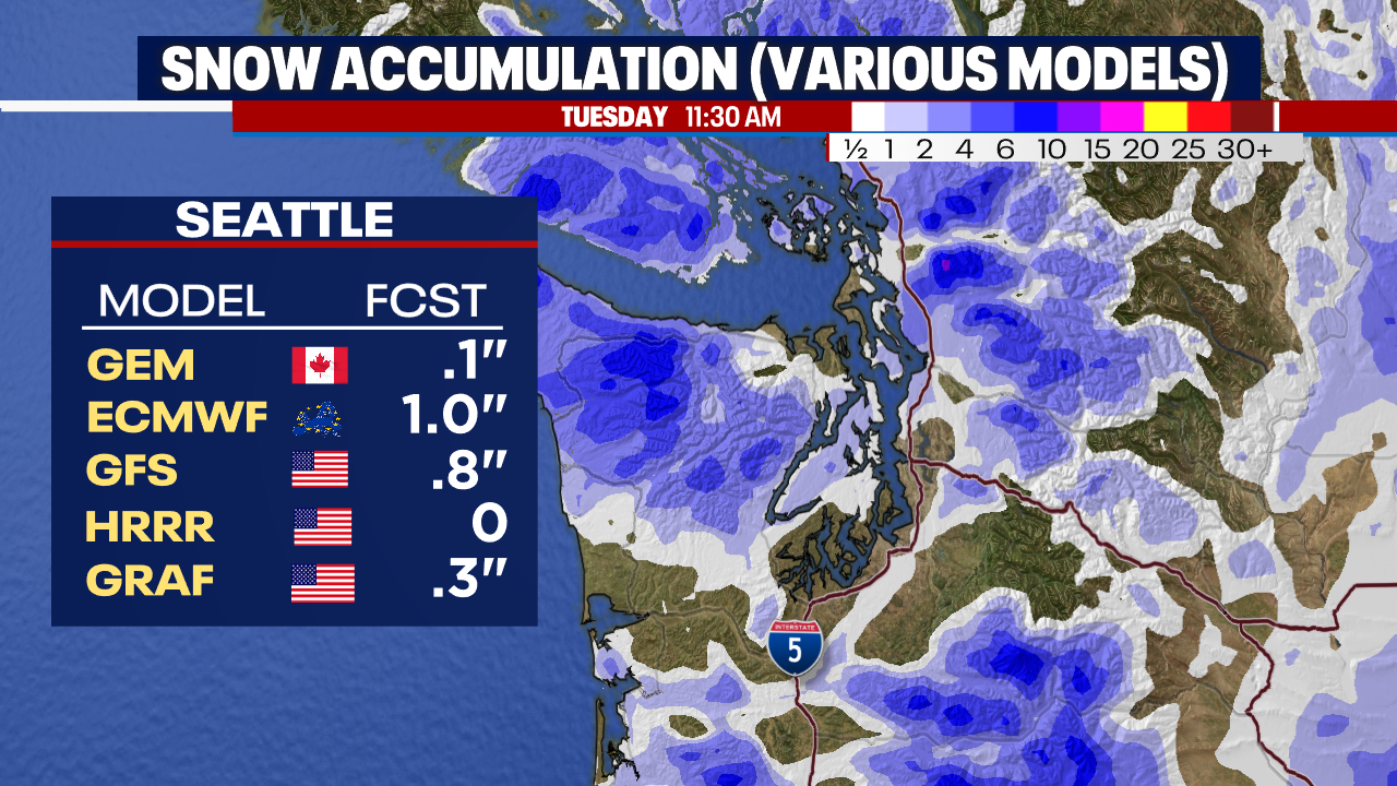 Seattle weather: Another round of light lowland snow possible Tuesday morning