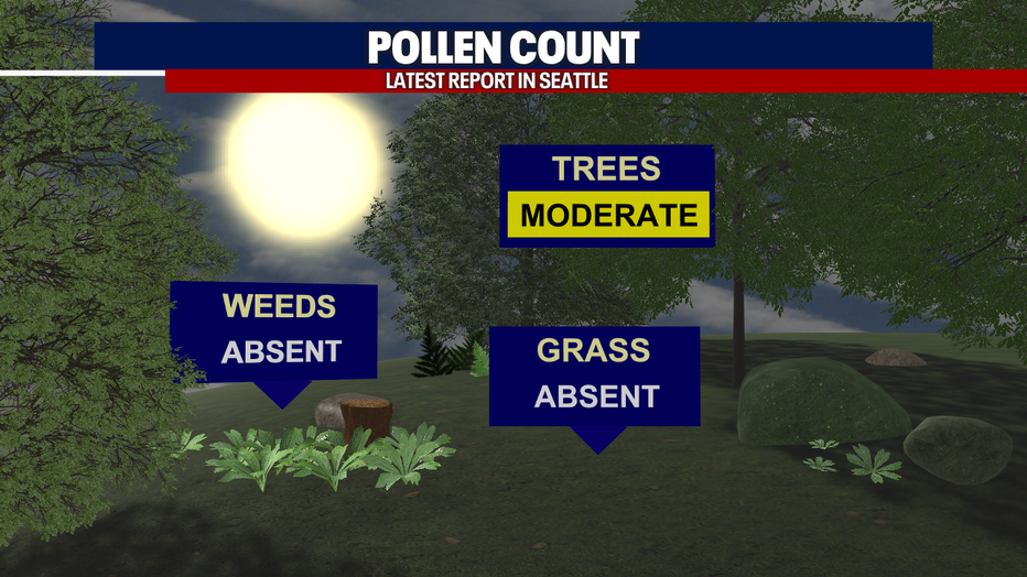 The latest pollen count in Seattle is registering "trees" as moderate. Weeds and grasses have yet to show up this year (trust me: those buggers will make their appearance later this season!).