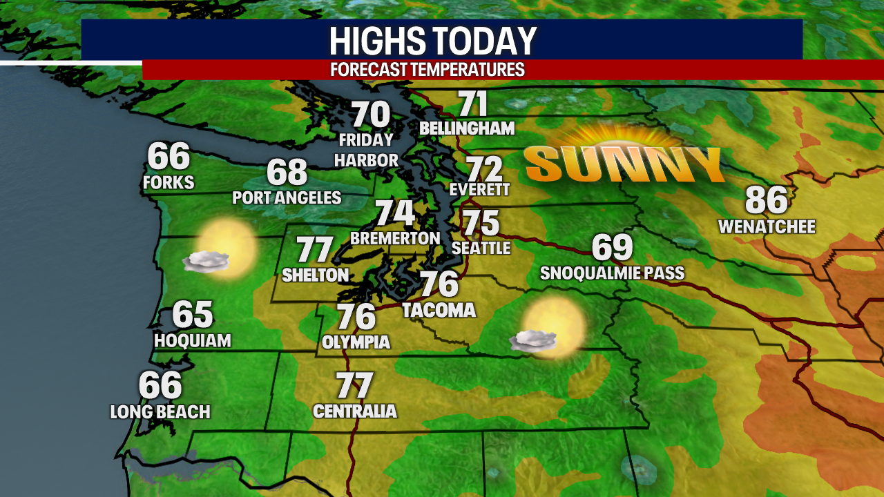 Seattle - Western Washington will see morning clouds, afternoon sunshine, and comfortable summer temperatures to end the work week.