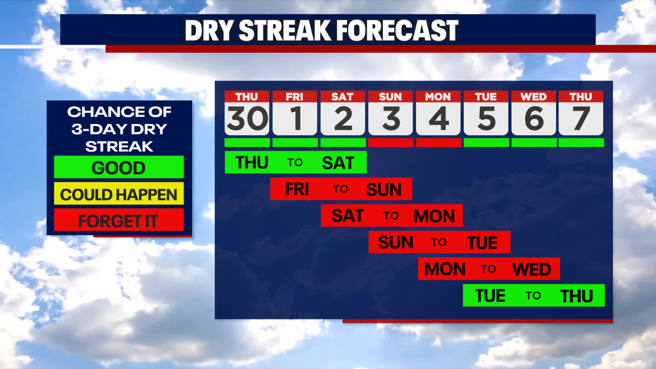 If you're looking for a three day stretch of dry weather to do some outdoor projects, now is the time, or you'll have to wait until next week. Showers are back in the forecast for Sunday and Monday.
