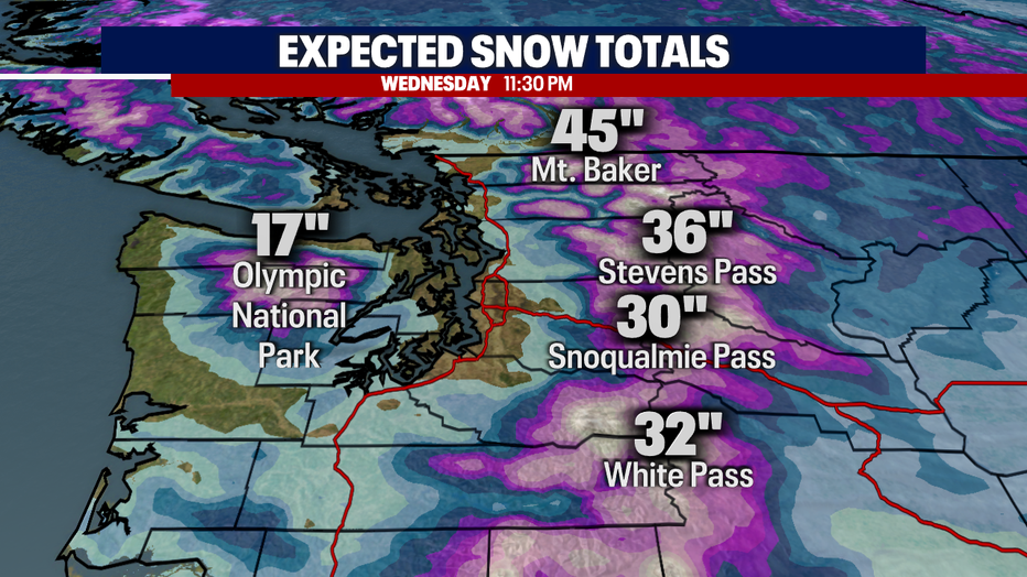 Snow totals will be very impressive through Wednesday night, with two to four feet expected in the Cascades.