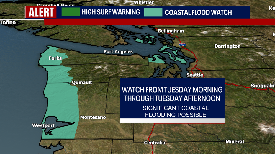 The next round of King Tides along with the approaching storm will bring an increased risk of coastal flooding. This Coastal Flood Watch also includes the San Juans and Admiralty Inlet areas for a potential of two to three feet of coastal flood inundation.