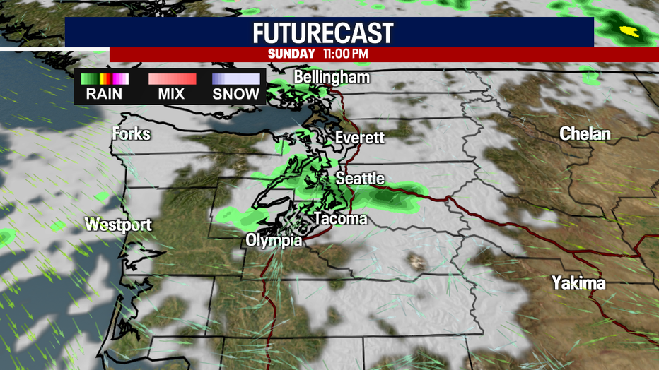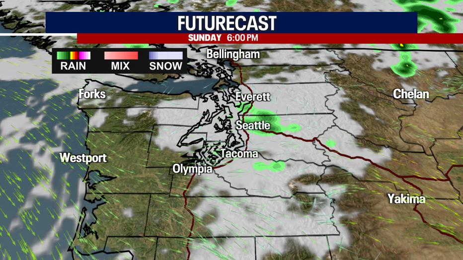 This evening and tonight there's a chance of light showers sneaking into the Central Sound.