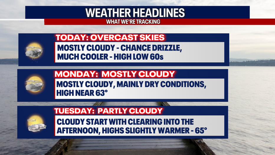 SEATTLE - Ready for the cool down folks? Temperatures drop into the low 60s today, and we'll slowly work our way back to above average by the middle of next week.
