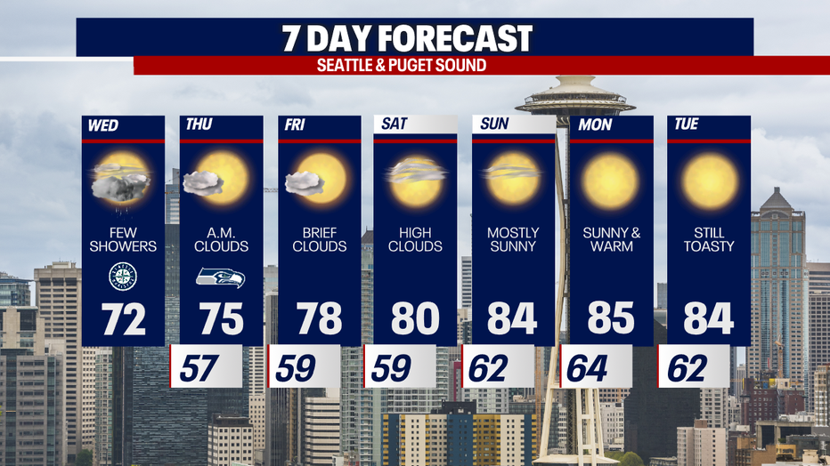 Wednesday is the last day of the "heat of summer" where Seattle's average high temperature is at its peak. On average, temps start cooling down through the end of the month.