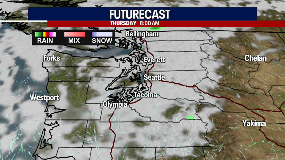 After the evening commute, Western Washington will dry out under cloudy skies. Those clouds will hang on through at least the first half of Thursday.