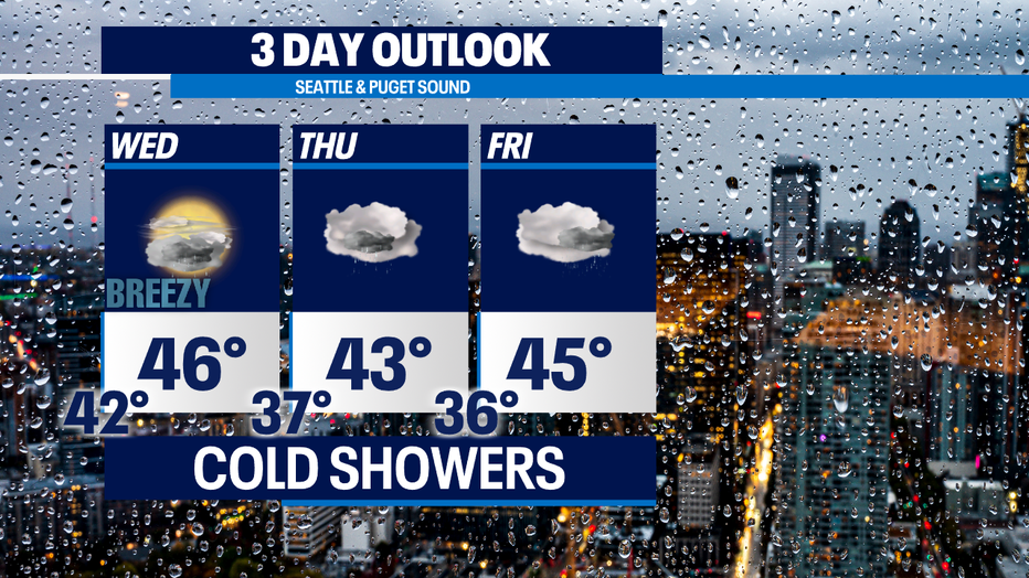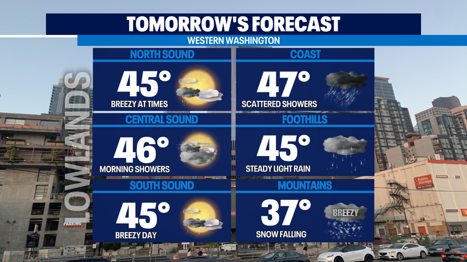 This will affect our early morning commuters and pass travelers! Temperatures will bottom out in the upper 30s and lower 40s, so we're stickily expecting cold rain in the lowlands. Set that alarm an extra 15 minutes earlier, so you can get a jump start on that commute tomorrow!