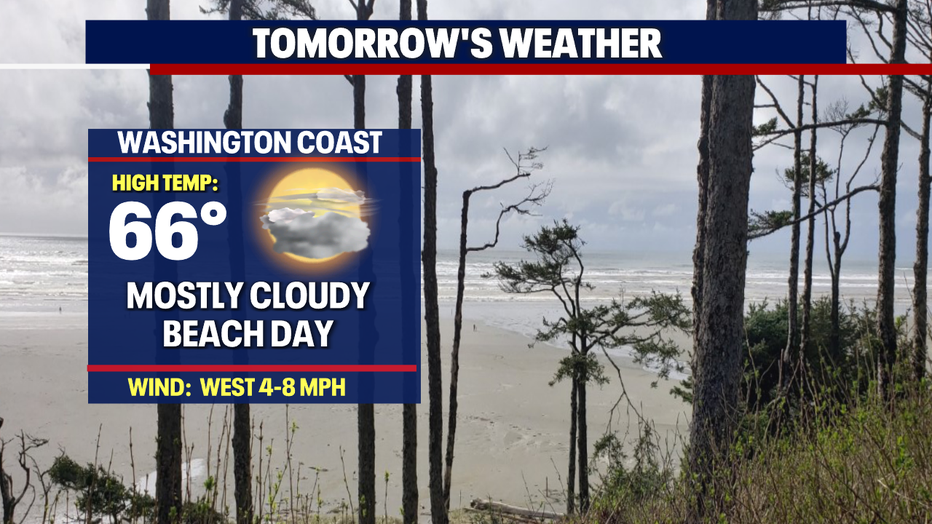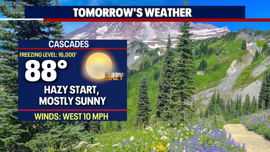 Overnight, skies are mostly clear until just before sunrise when clouds fill Puget Sound. Temperatures cool to near average in the mid to upper 50s.