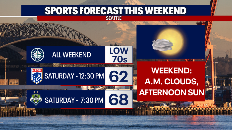 The weather should hold up nicely for the Mariners, OL Reign and Sounders today. Just grab a slight sweatshirt if you're someone that runs chilly in shady spots.