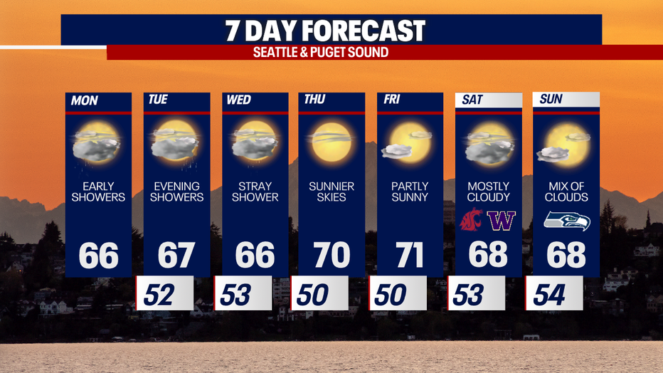 SEATTLE - The last week of summer will be cooler with rain chances and more clouds the next few days.