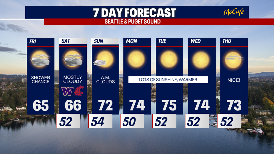 Seattle weather: Cooler with a chance for showers Friday