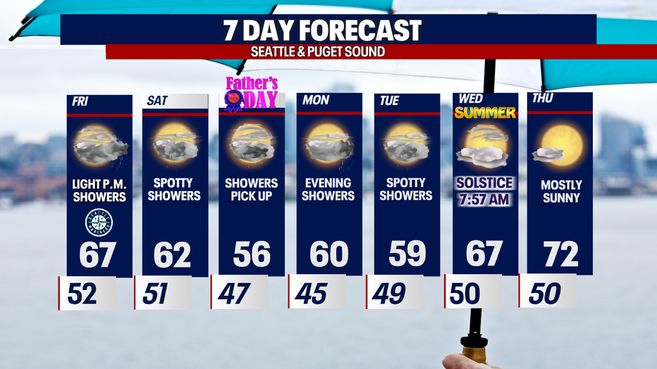 Seattle weather: Cooling off with a showery Father's Day weekend ahead