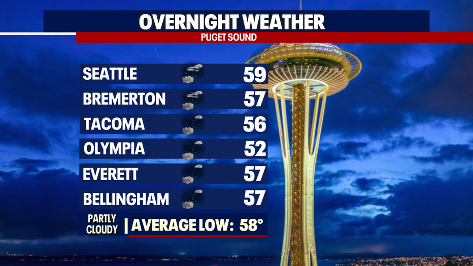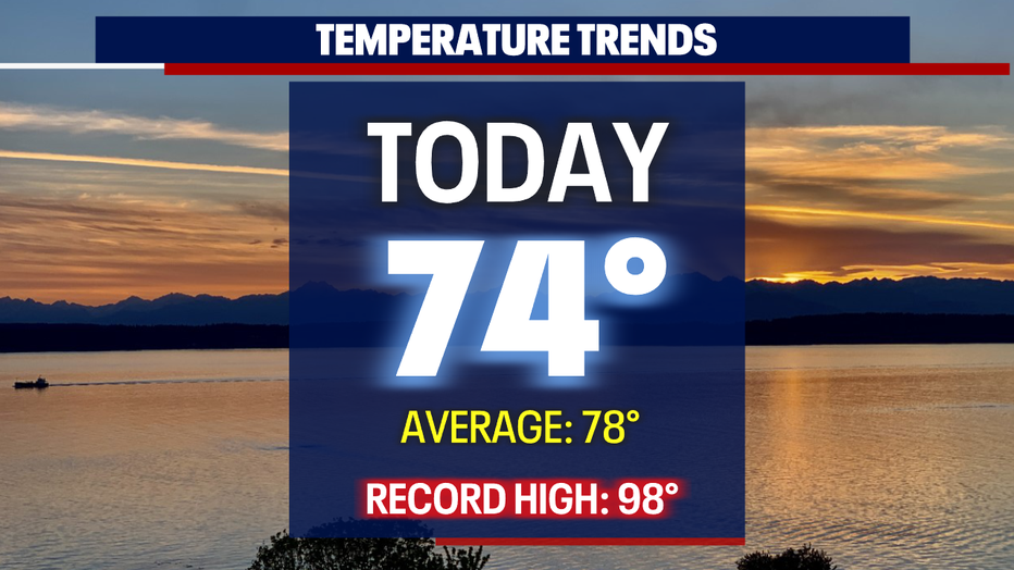 SEATTLE - After a mostly overcast day, highs only warmed into the mid-70s around the Central Sound. SeaTac hit 74 at the airport, just four degrees shy of average.