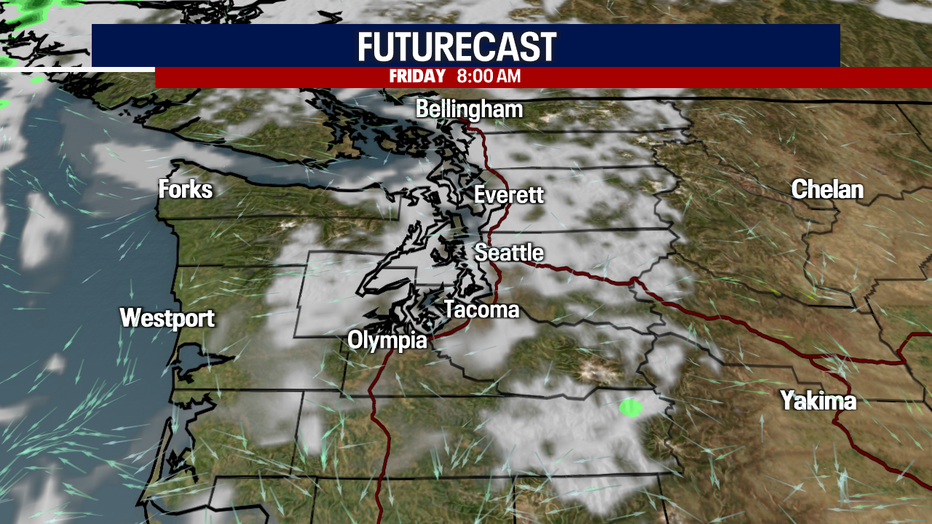 Most of us along the I-5 corridor wake up to filtered sunshine Friday. By mid-morning skies start turning mostly blue as cloud cover diminishes.