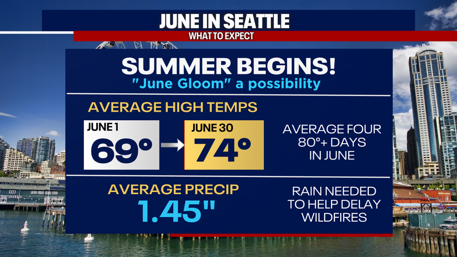 Meteorological summer begins today! While "June Gloom" is a possibility in Seattle, this month's long range forecast looks drier and warmer than average for Western Washington.