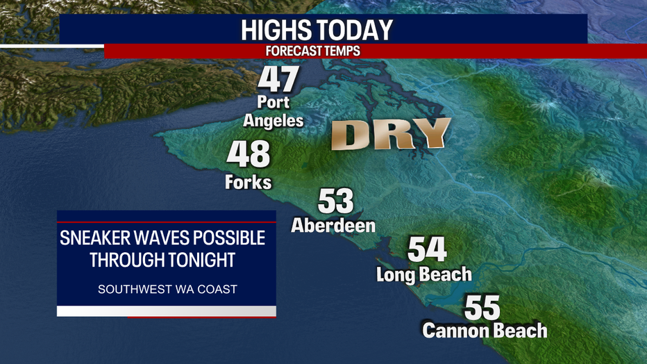 Keep in mind: sneaker waves will make for dangerous conditions along the southwest Washington coast. These waves can easily sweep people off of rocks and jetties, so be careful!