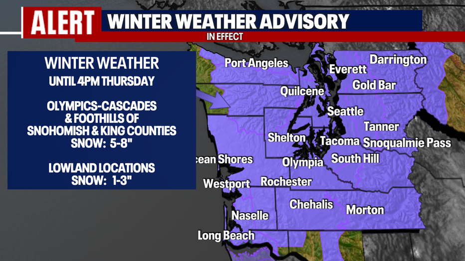Allow for extra time out the door Thursday, especially in South King and Pierce Counties where snow could coat the region during the morning commute.