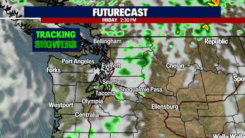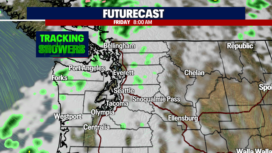 Showers will progress throughout the day and will quickly track out towards the east. The best shot for showers will develop across the north sound!