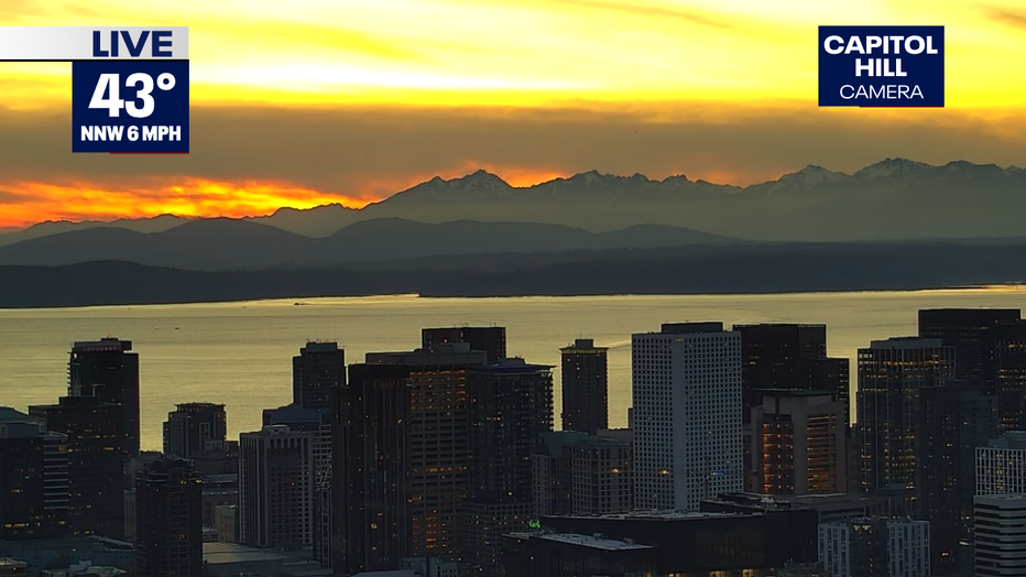 Seattle - Talk about a beautiful day! Highs peaked in the upper 40s (48 degrees) under sunny skies. The sunset wasn't too bad either.