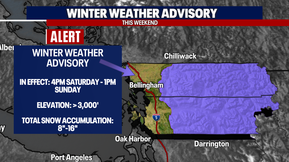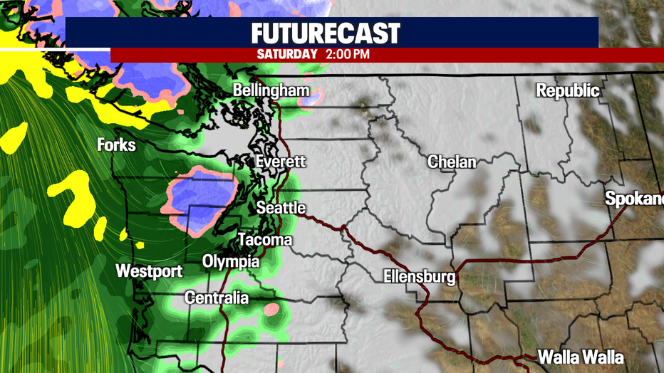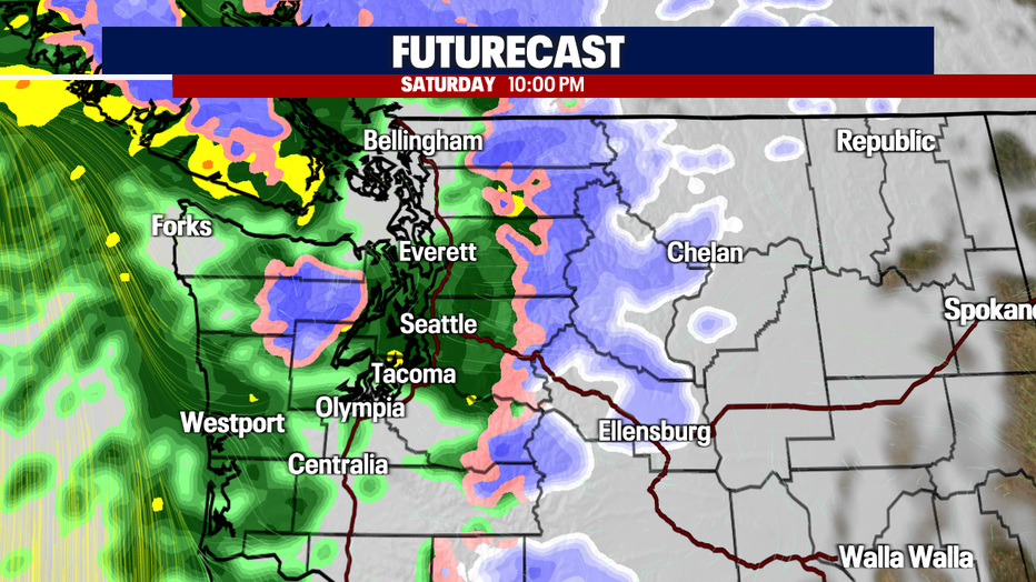 Mountain snow will also increase too. I'll tell you what - we need it! Parts of the cascades will be under a *Winter Weather Advisory*. We can expect up to 2' of wet snow by the end of the 7-day forecast. Use caution traveling through the passes this weekend (especially late Sunday and early Monday).