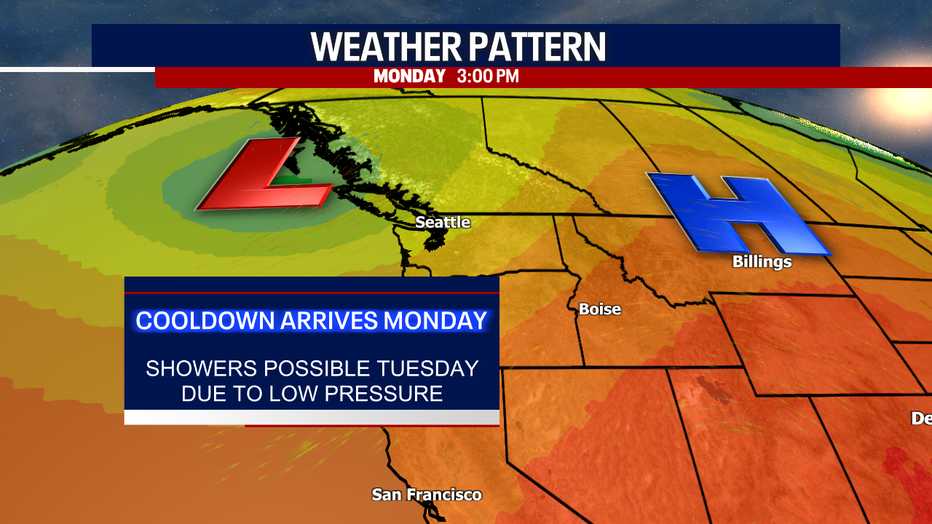 Our warmth this weekend is due to a weather pattern called "high pressure." This type of system tends to give us warm and dry weather. By Monday, high pressure will move east, giving way to an area of low pressure. This next weather maker will cool temperatures and spark isolated to scattered showers late Monday into Tuesday. There's still plenty of time for that forecast to change, so stay tuned!