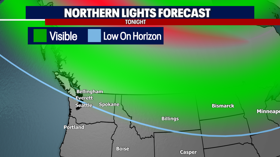 That could affect the Northern Light view tonight. We have another chance to check that out (Above the blue line below) but be aware of the cloud cover.