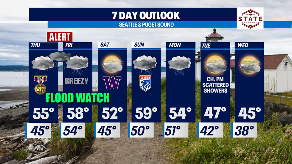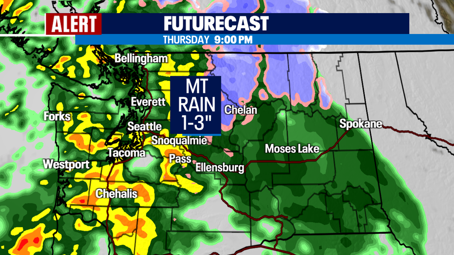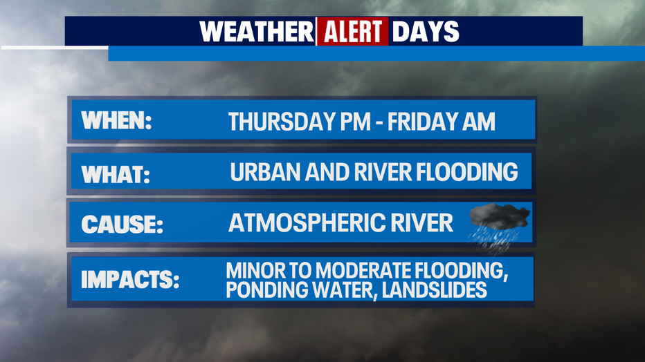 Seattle - We are in for a sloppy close to the work week as another atmospheric river slams into Washington delivering heavy rain and wind Thursday into Friday. And this why the FOX 13 Weather Team is calling for a Weather Alert. The of the rain and wind will happen Thursday afternoon into early Friday morning.